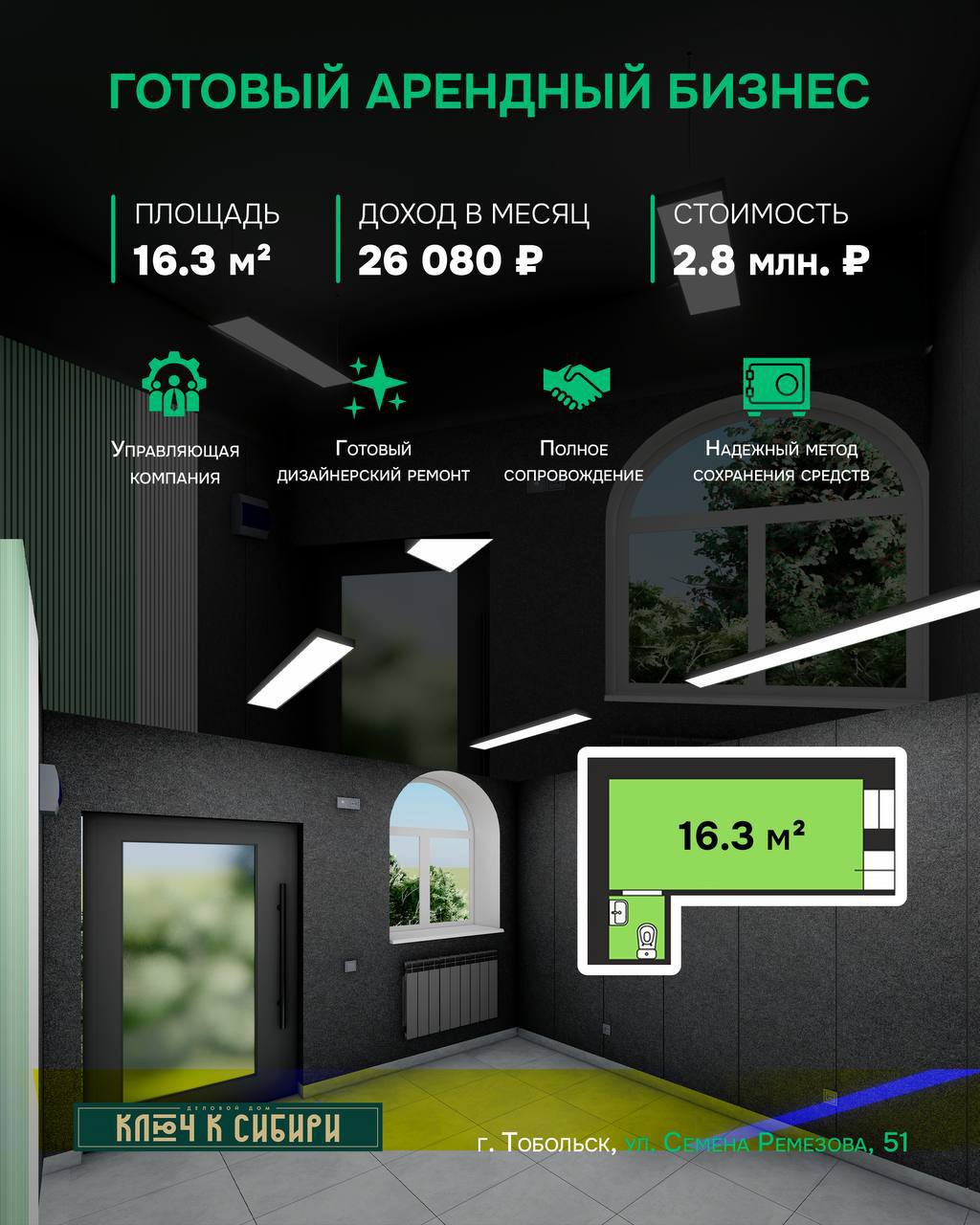 ГАБ в центре Тюмени: пассивный доход 26 560 ₽/мес — с первого дня покупки!
